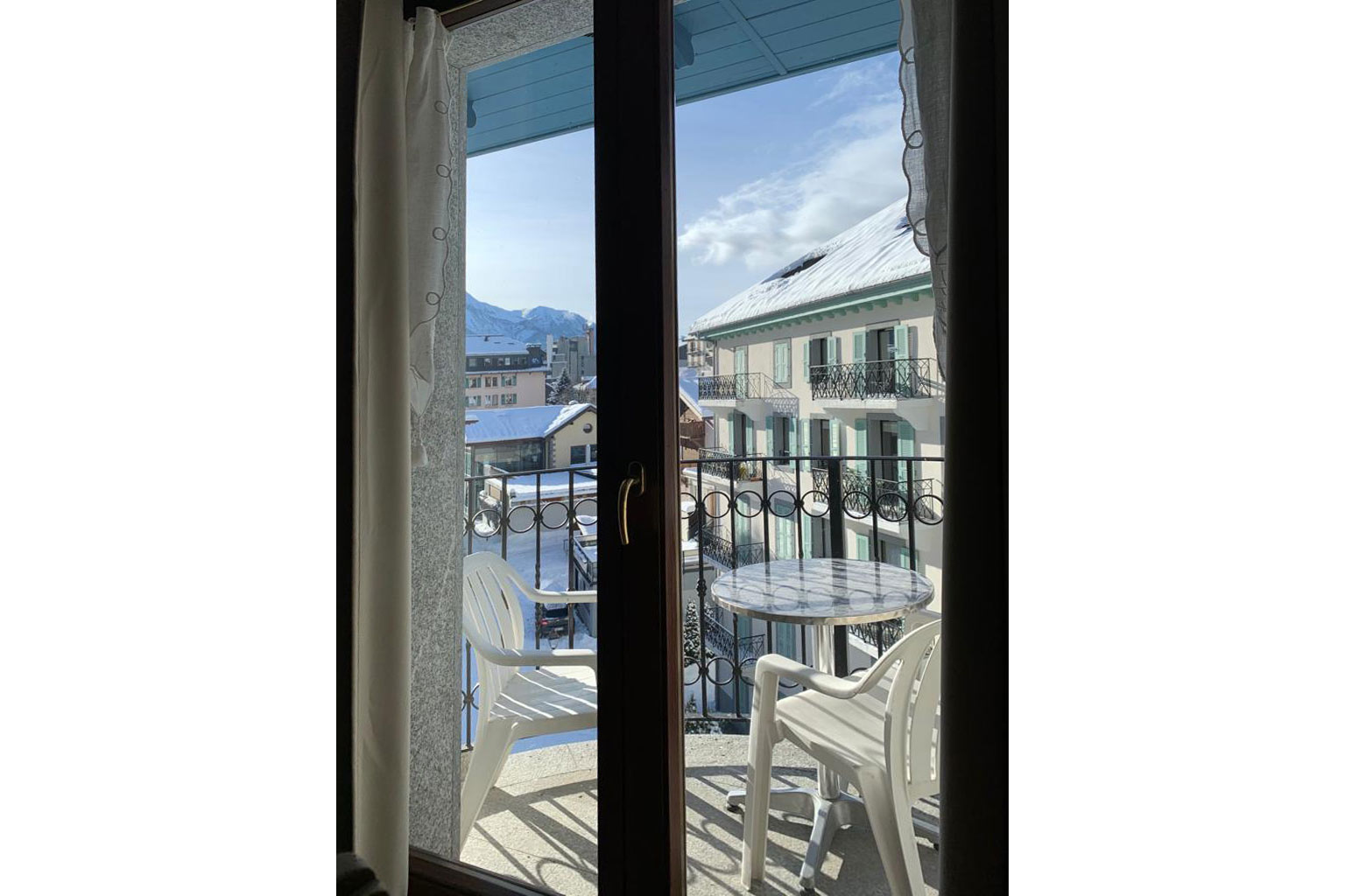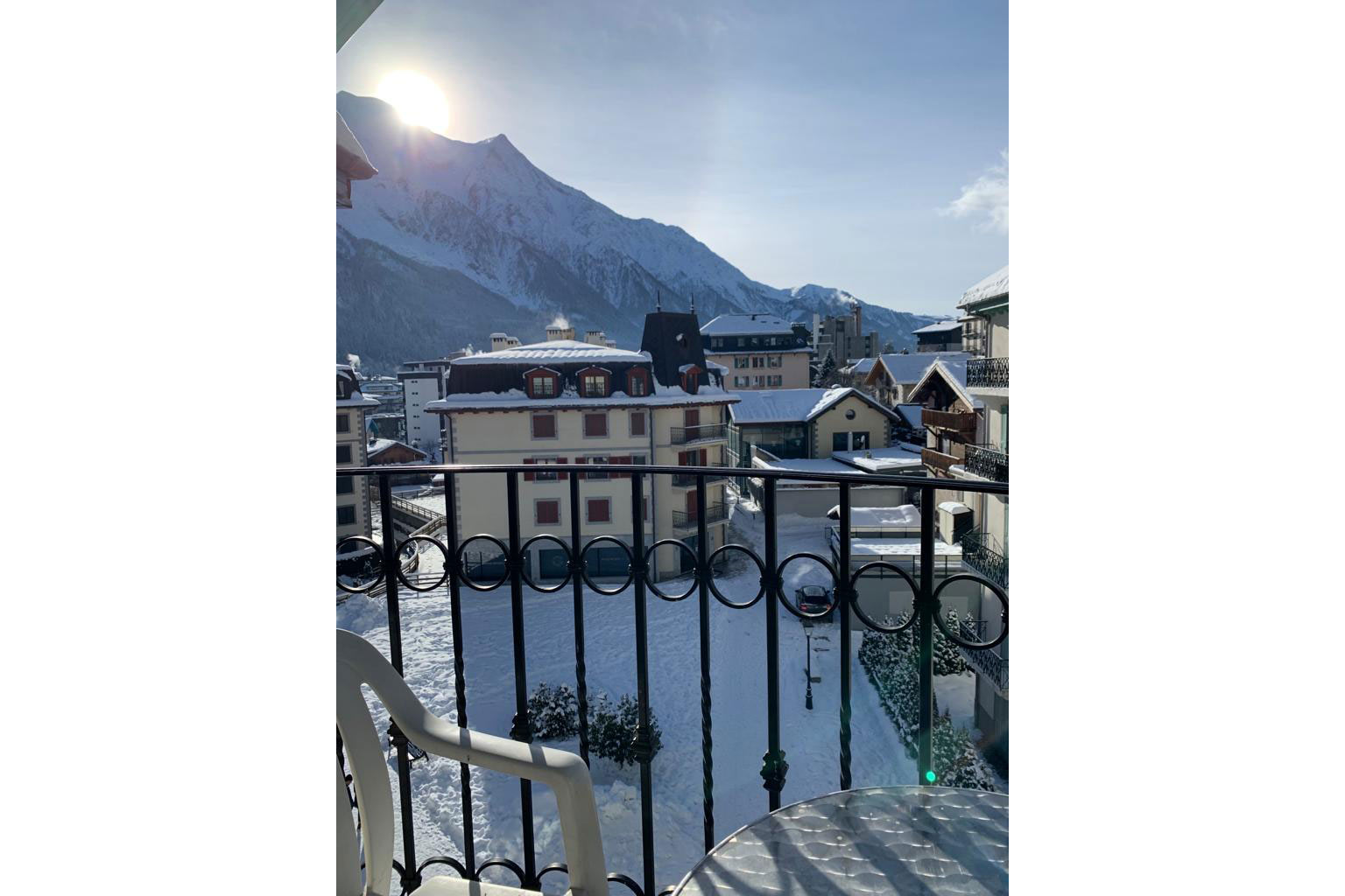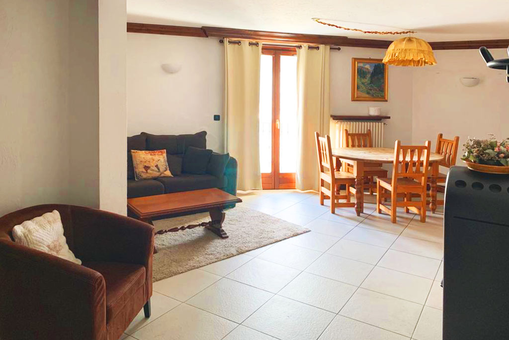 Alpes 43 Apartment is the perfect Chamonix apartment if you want to be right in the centre of town. This central Chamonix apartment sleeps 4 people with one double bedroom and a second twin bedroom. The open plan living dining kitchen is bright and airy positioned on the corner of the building. There is a comfortable sofa, TV, dining table that seats 4, plus a modern kitchen with mirowave oven & dishwasher.