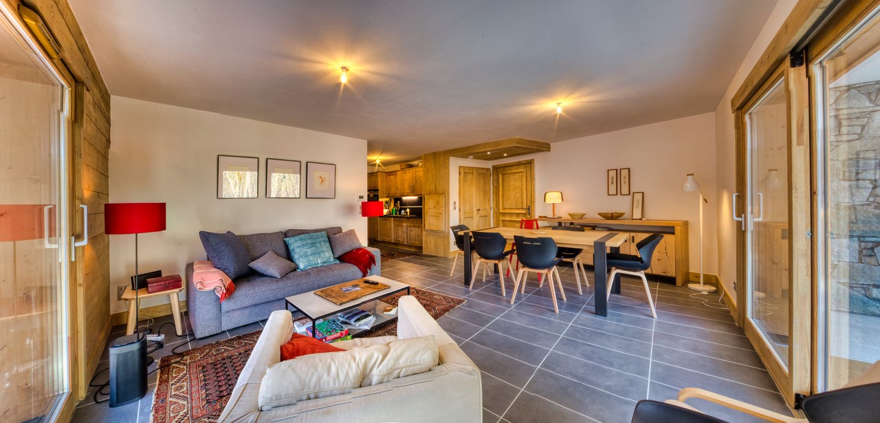 – A large living room with 2 bay windows opening onto a corner balcony-terrace,