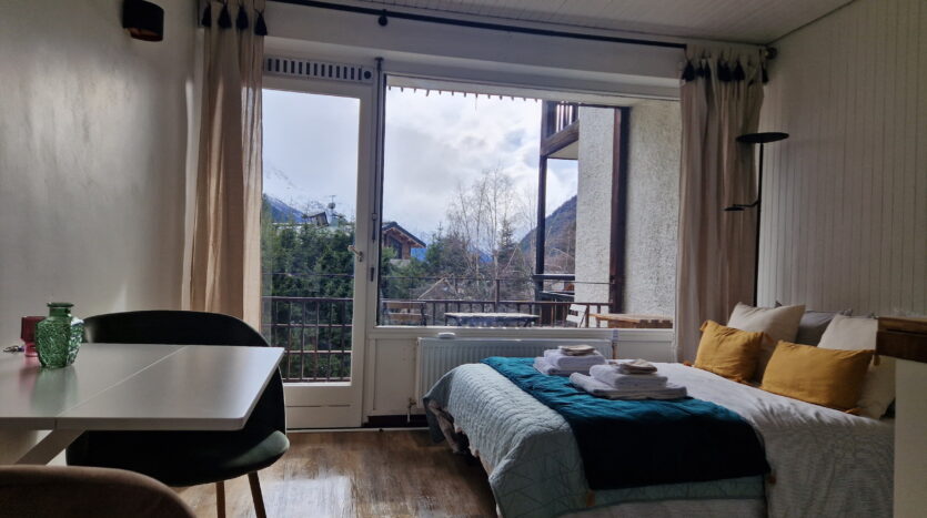 Stylish Argentière studio, centrally located just 2 min walk to Grands Montets slopes, lifts, bakery, supermarket, restaurants & bars. Cozy, newly renovated, with sunny balcony and stunning Chamonix Valley views. Perfect for skiing, hiking & year-round stays.