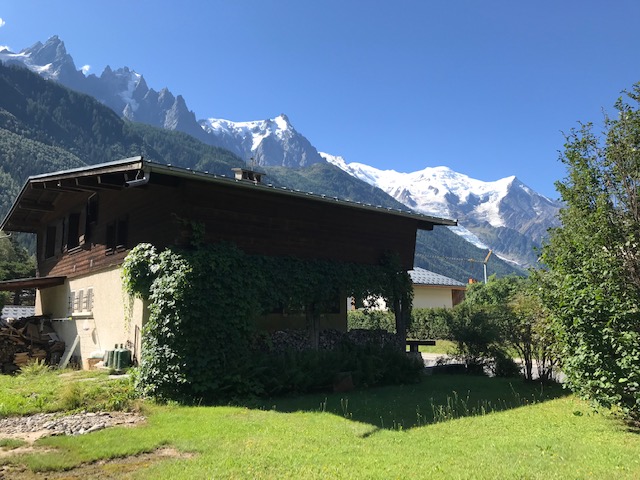 Large garden with an incredible view of Les Drus and the entire Mont-Blanc range.