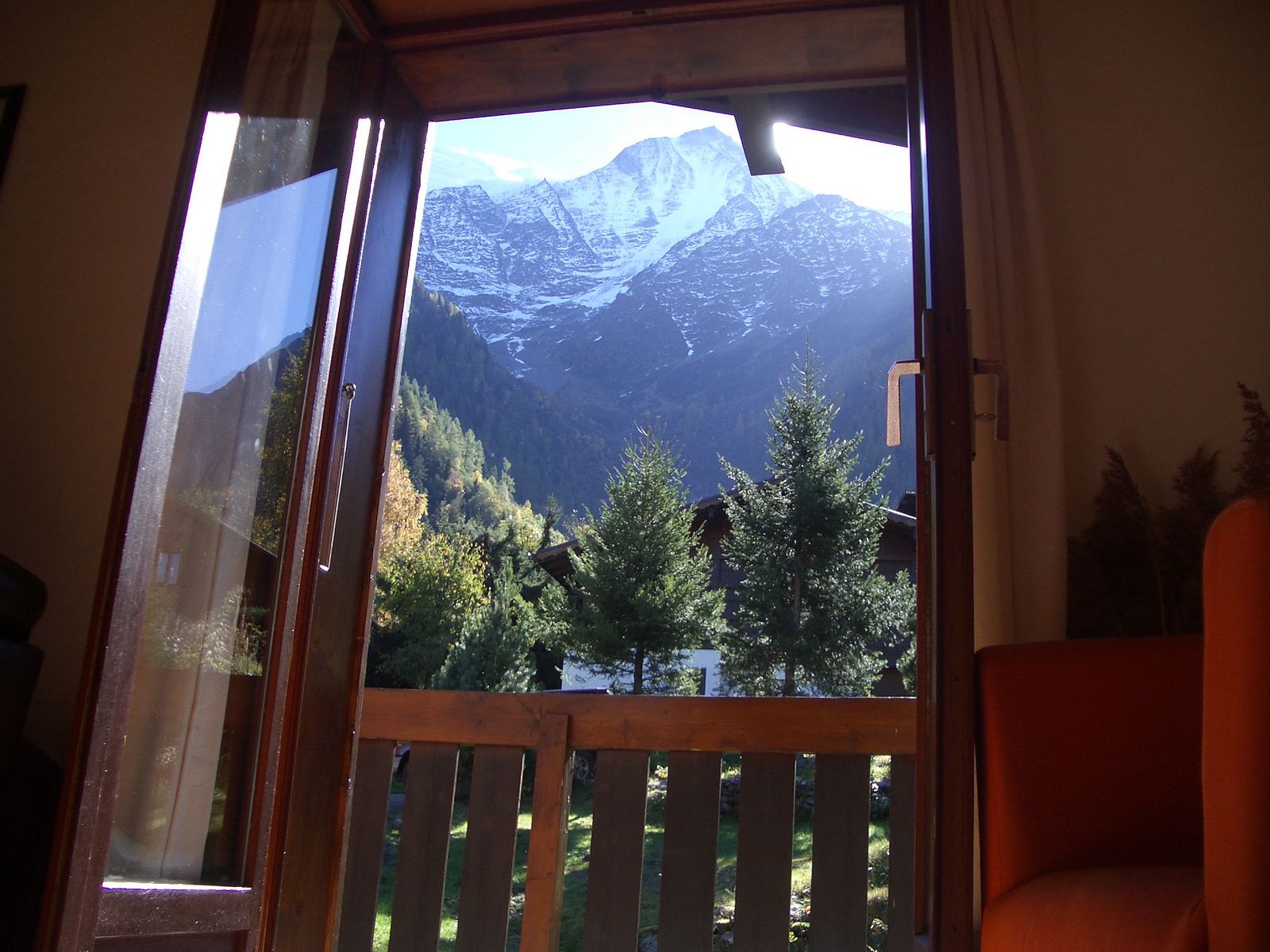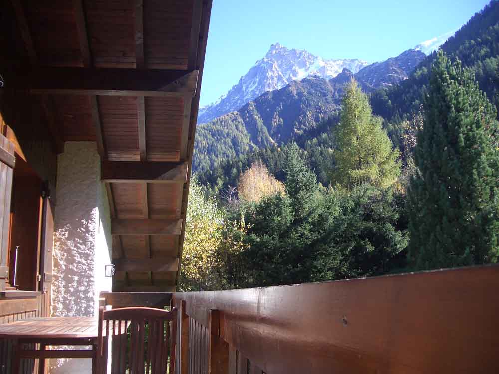 The south facing balcony is accessed from the lounge and looks directly up to “Les Aiguilles de Chamonix” – the row of mountains whose precipitous North faces tower over the town.