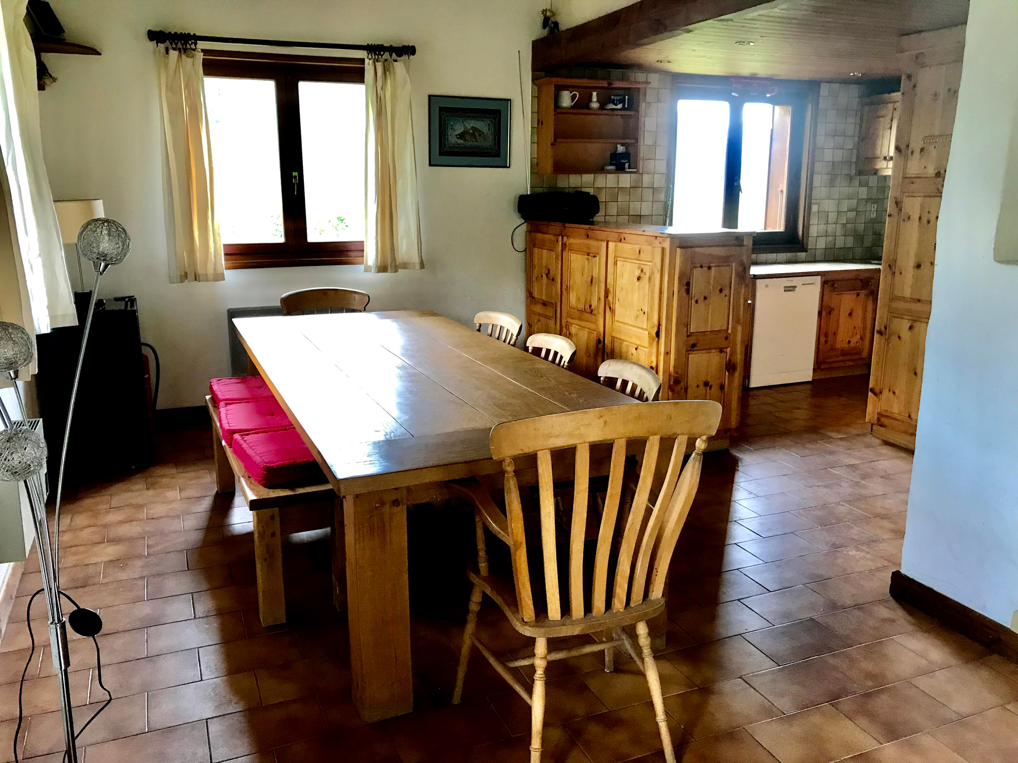The chalet provides 140 sq.m of living space in grounds of 1250 sq.m in the quiet residential area of Taconnaz. There are 5 bedrooms – 2 with double beds, 2 twins and a triple (1 double bed and 1 single).