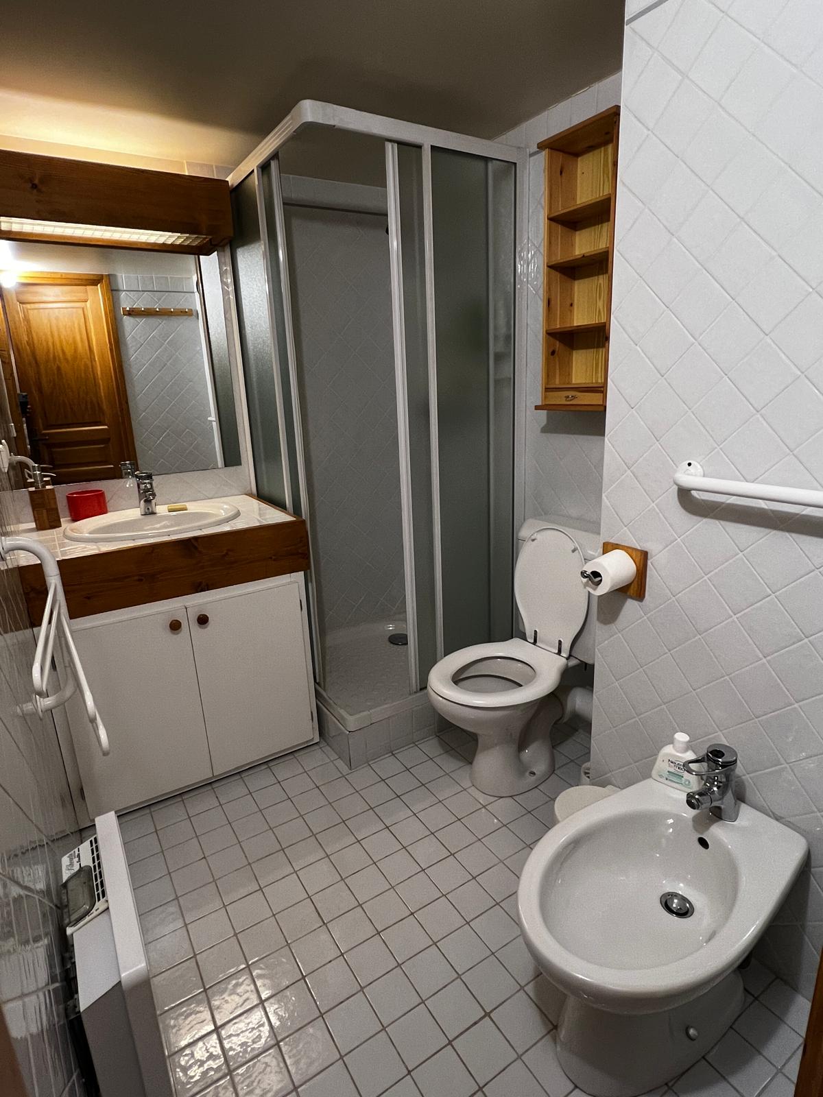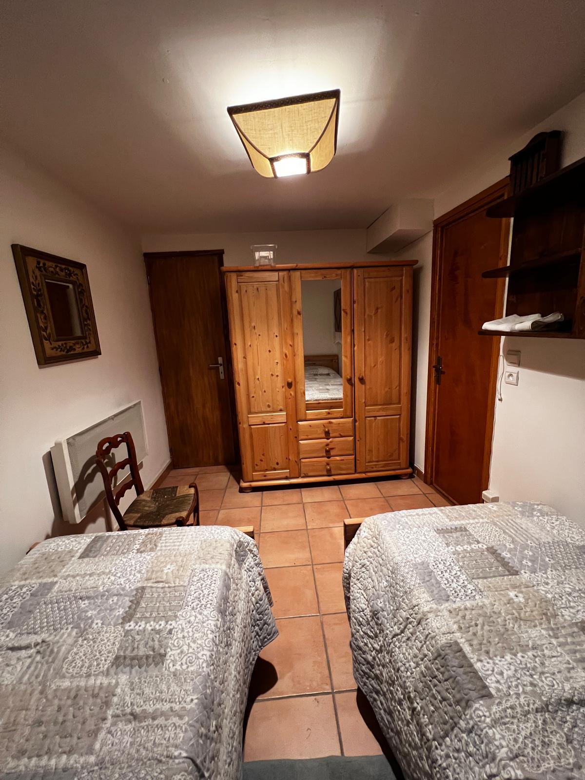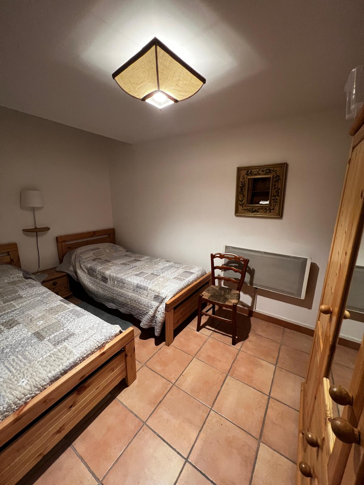 A chalet in a majestic residential complex located in Les Praz de Chamonix comprises an entrance hall, guest bathroom, living room with open kitchen, two bedrooms with double beds and one bedroom with single beds, and two bathrooms with all necessary amenities.
