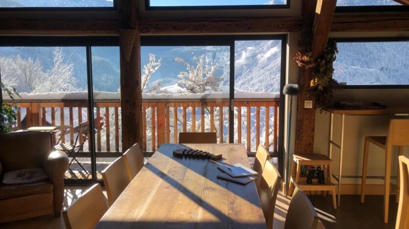 The chalet is very private with an open plan kitchen, dining and living area. It’s bright, spacious and extremely comfortable. The main attraction is the huge picture windows taking up the entire front first floor elevation. The views of the Mont-Blanc Mountain Range are out of this world. the chalet receives sunshine all winter to make your stay here a highly desirable one.