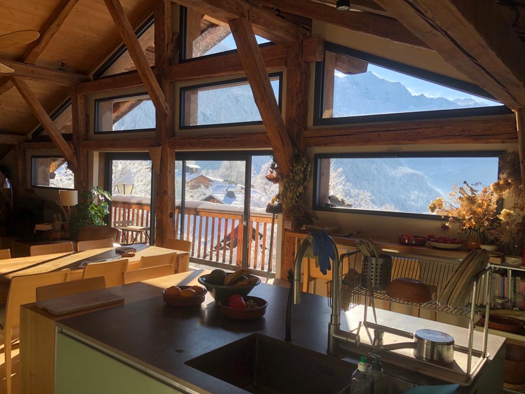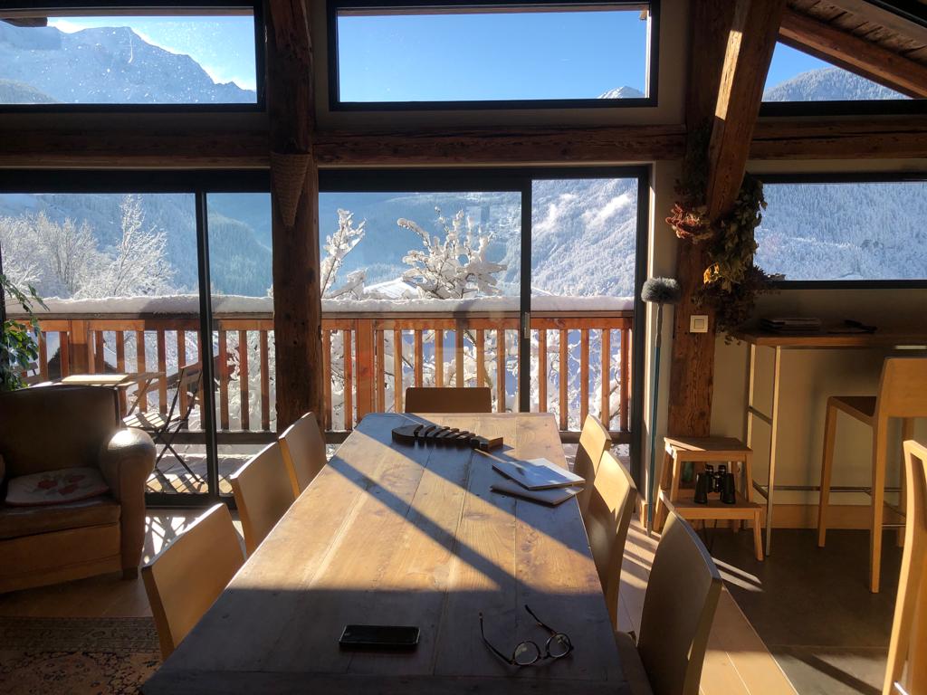 The chalet is very private with an open plan kitchen, dining and living area. It’s bright, spacious and extremely comfortable. The main attraction is the huge picture windows taking up the entire front first floor elevation. The views of the Mont-Blanc Mountain Range are out of this world. the chalet receives sunshine all winter to make your stay here a highly desirable one.