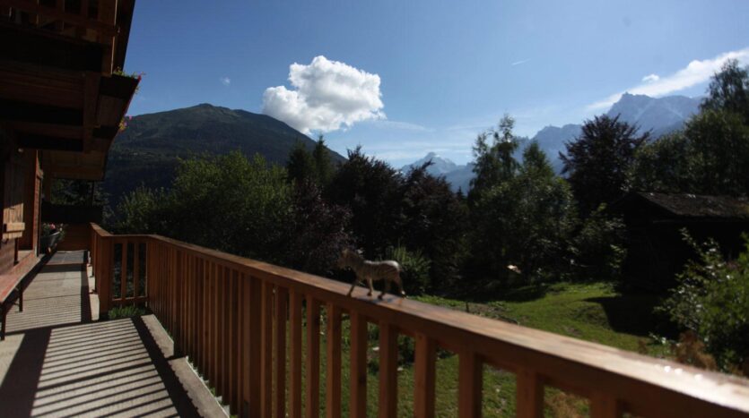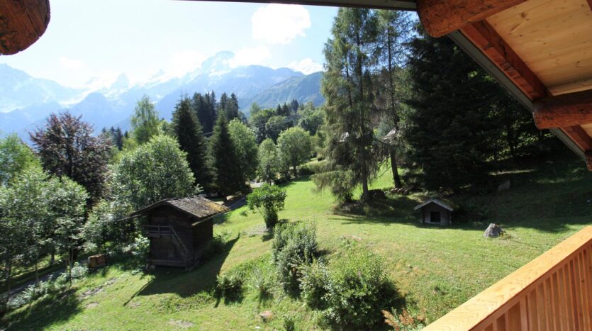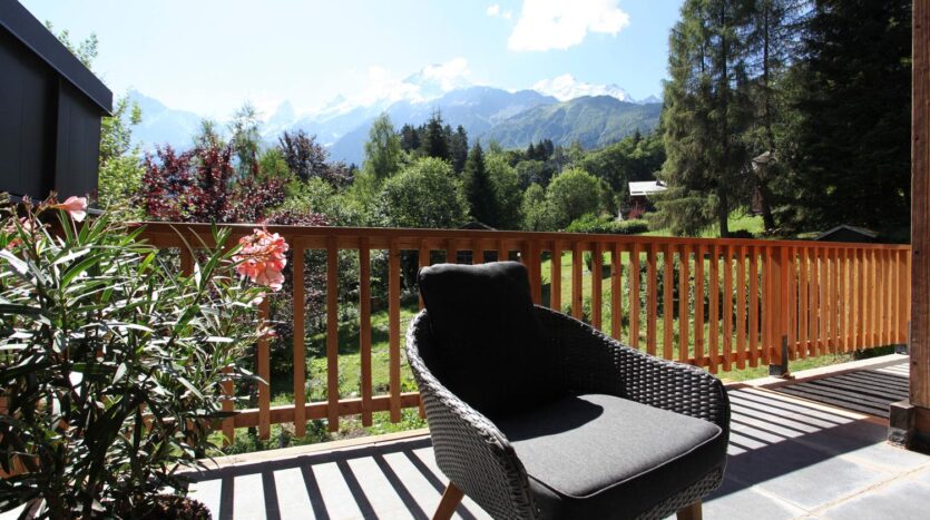 Outside there is a long terrace with seating area to one end with majestic views of the Mont-Blanc Mountain Range and the huge garden and adjoining forest.