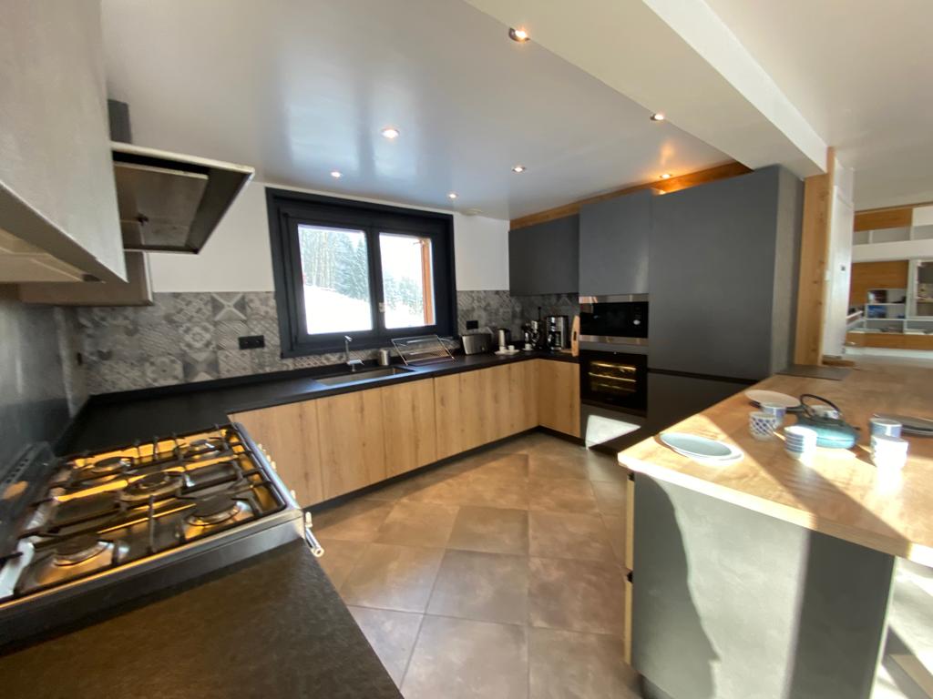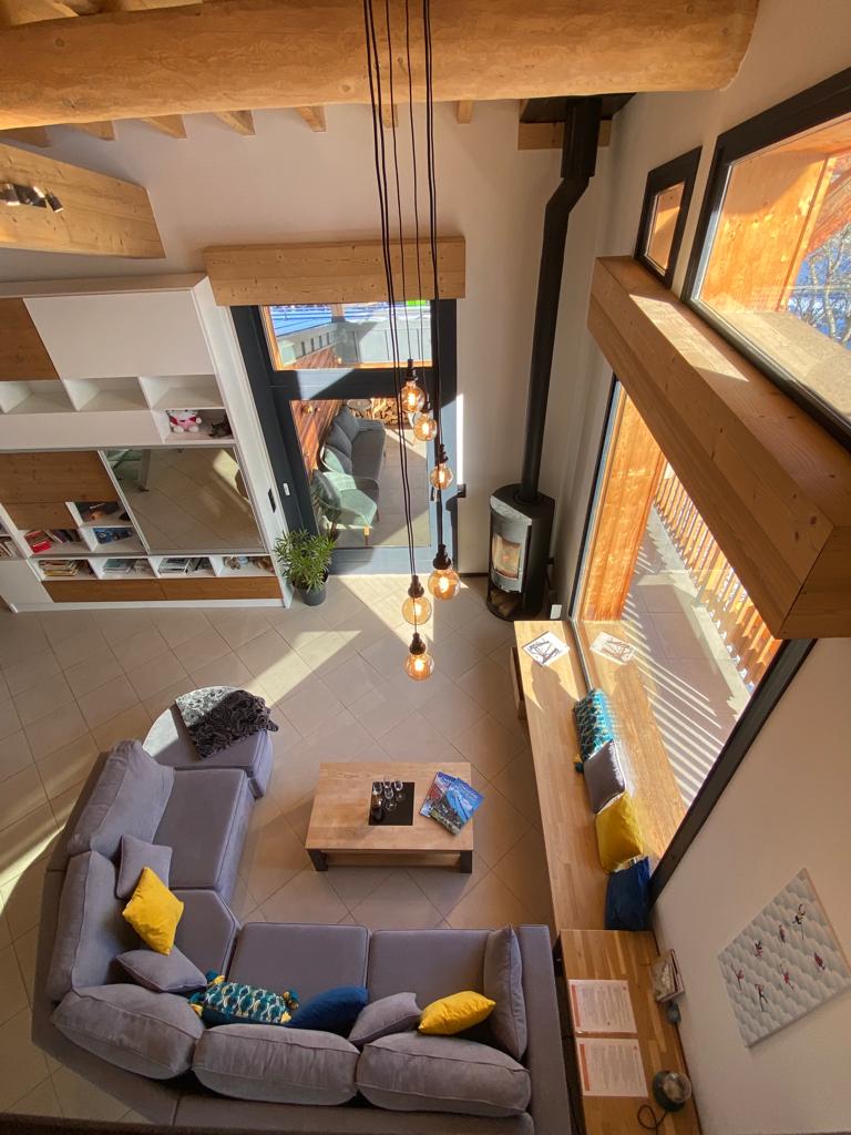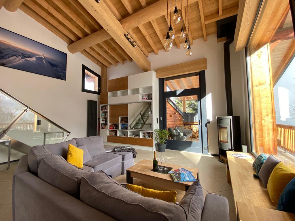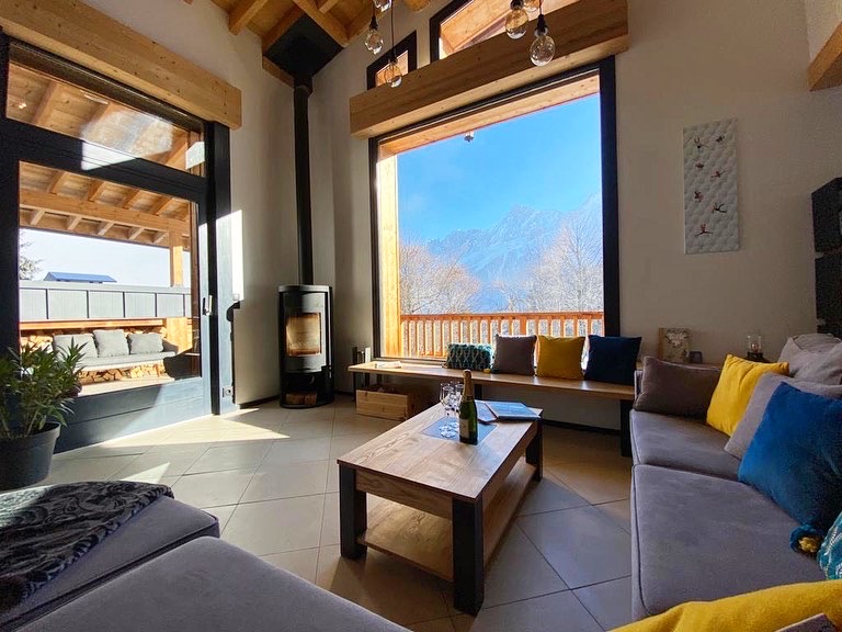 A truly wonderful luxury 4 bedroom chalet sleeping 10 people. The chalet has huge floor to ceiling windows in the open plan living area and includes a large wood burning stove, comfy sofas, large dining table and fully equipped kitchen.