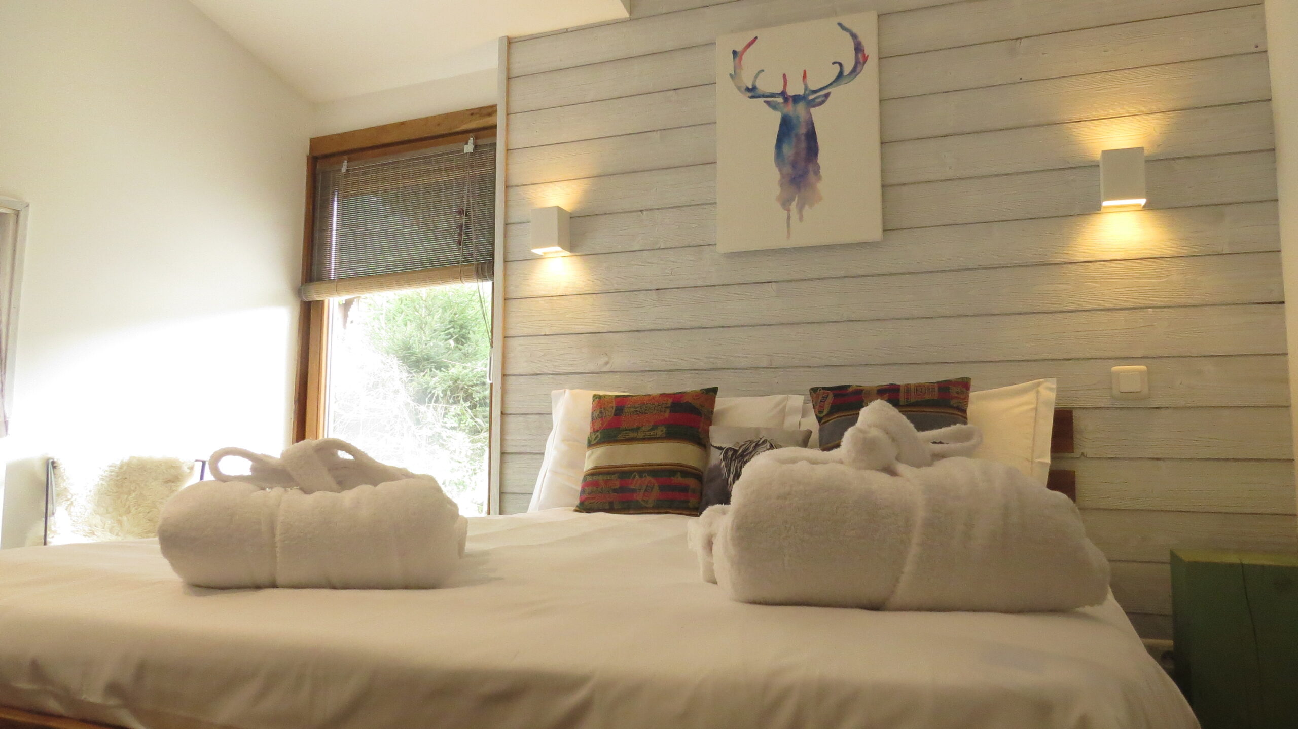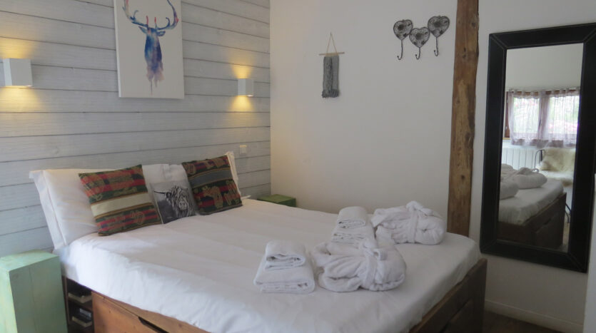 This Chalet is fully equipped, includes Wifi and can accommodate 4 people very comfortably. The entrance is used as a kit room, contains large storage for winter wear and equipment. The warm indoor living/dining area includes a big smart TV, new wood burner, a sofa bed and large dining table. This space gives direct access to the outside terrace by double glass doors.