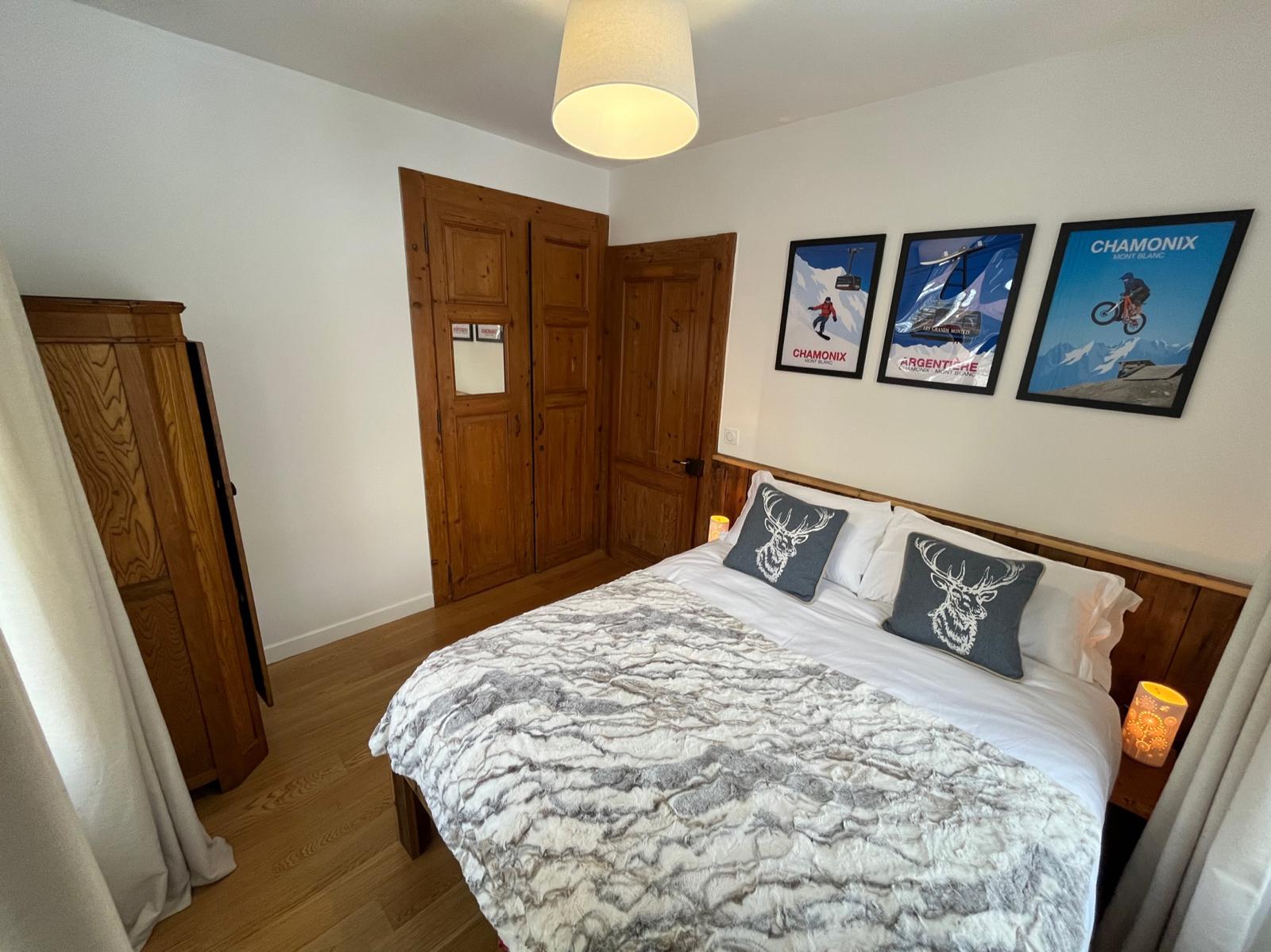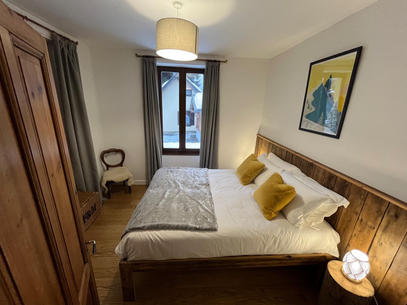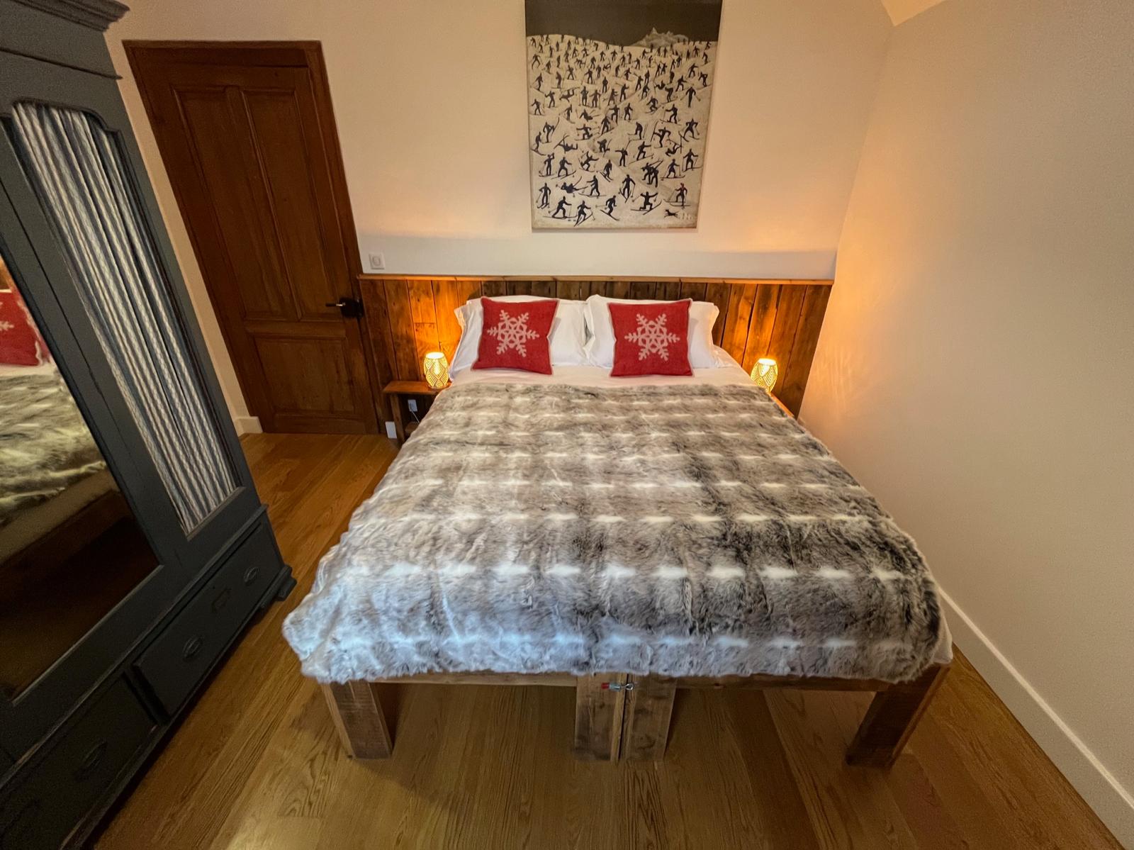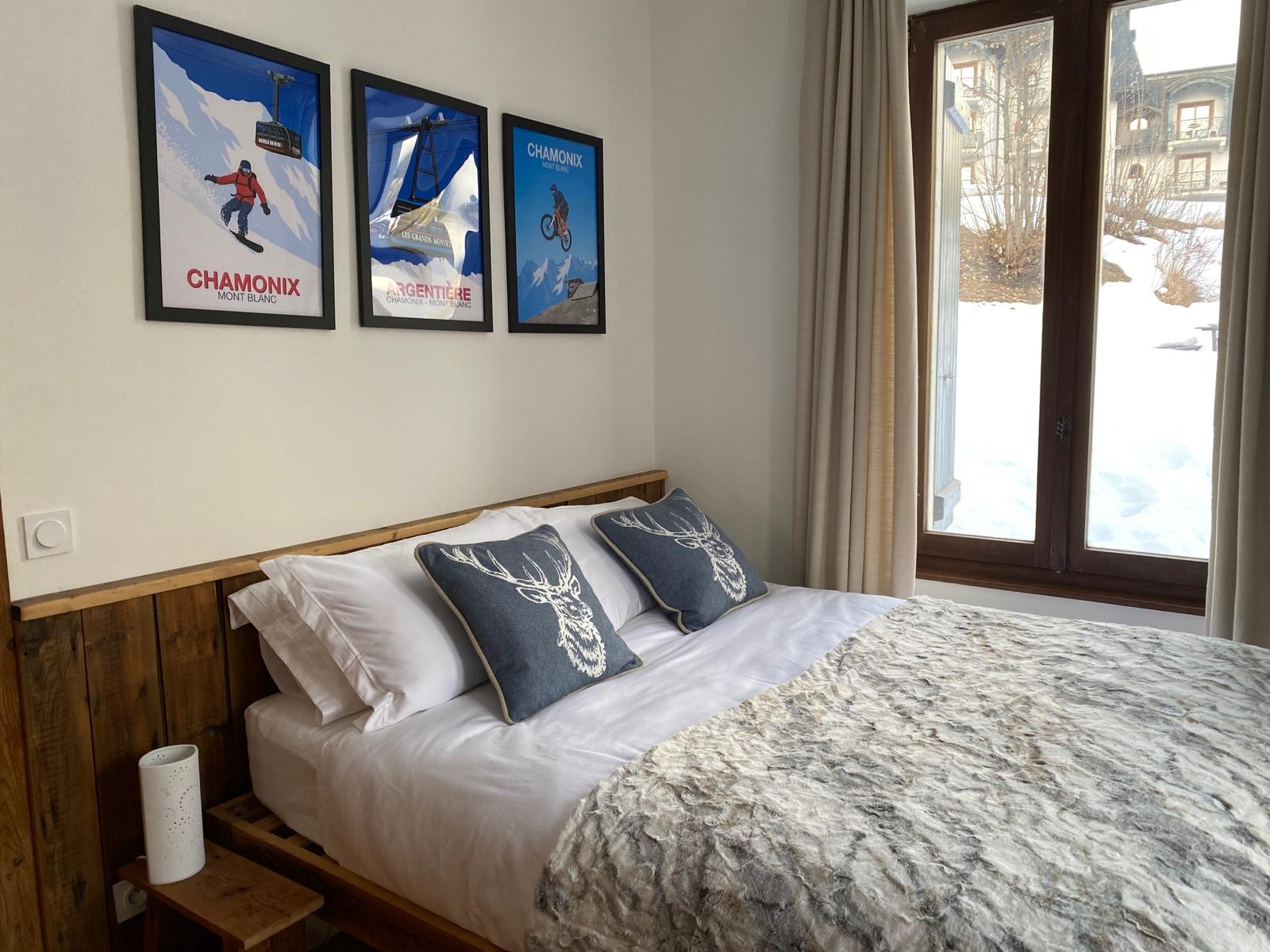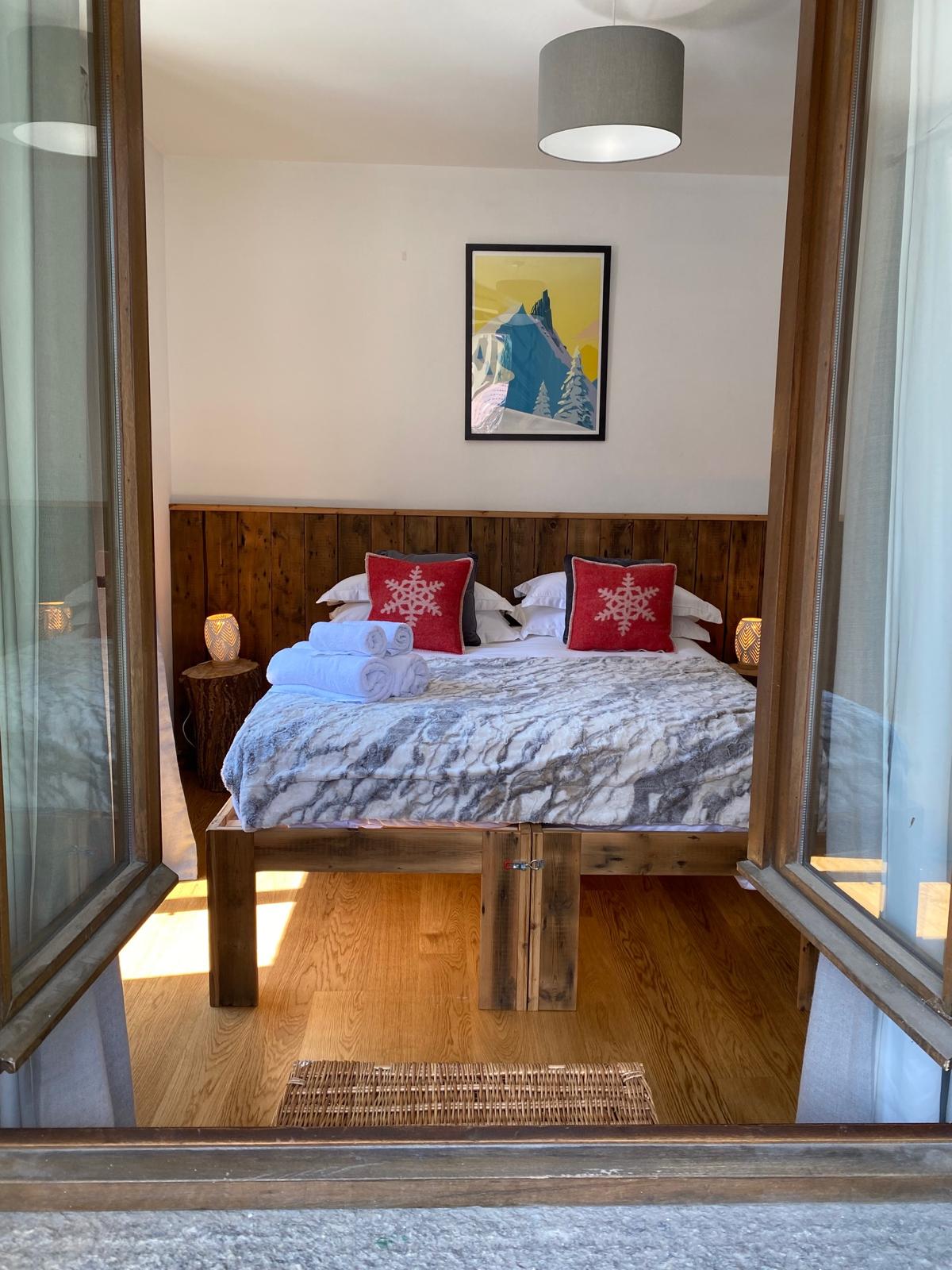 Bedroom 3: The third bedroom has a double bed (160 x 200 cm), which can also be made up into 2 singles; wardrobe. Views of the Grand Montets Massif.