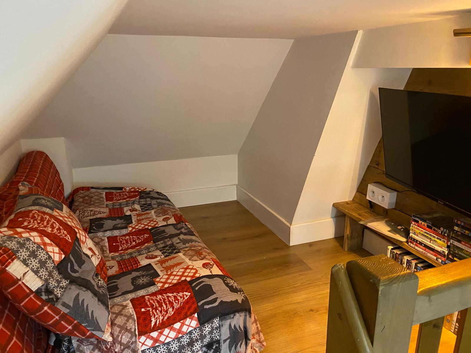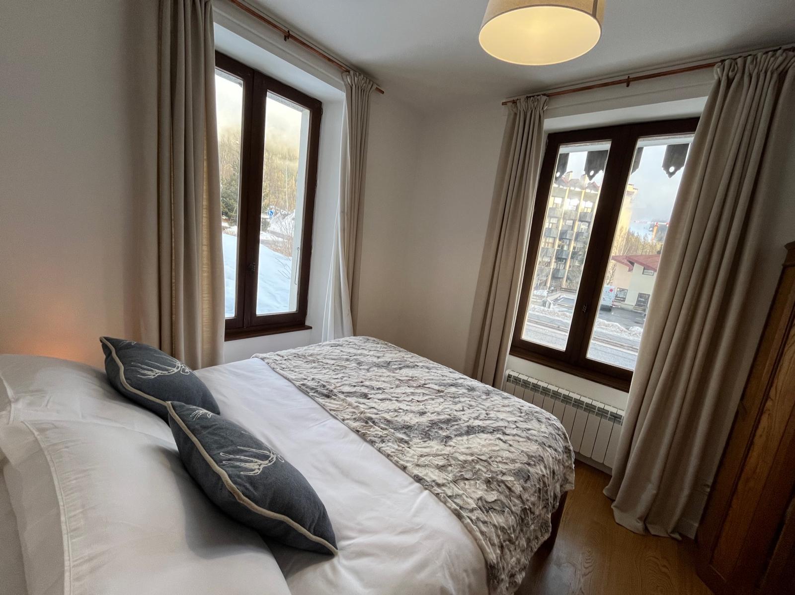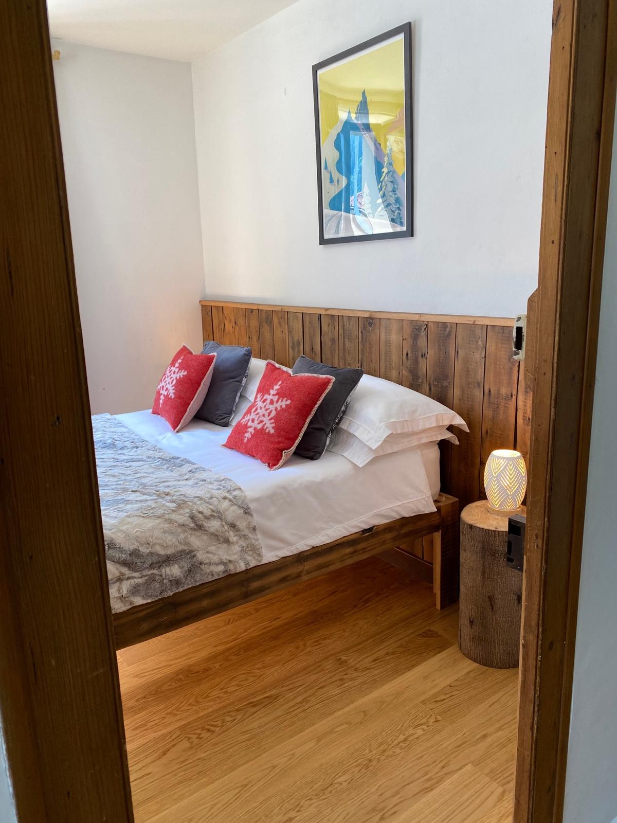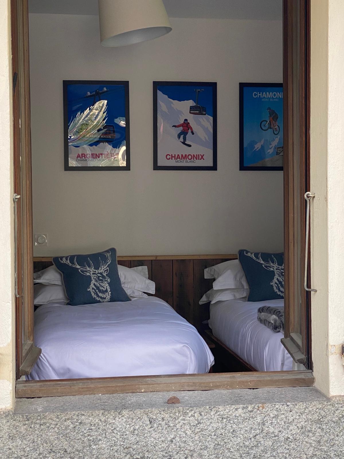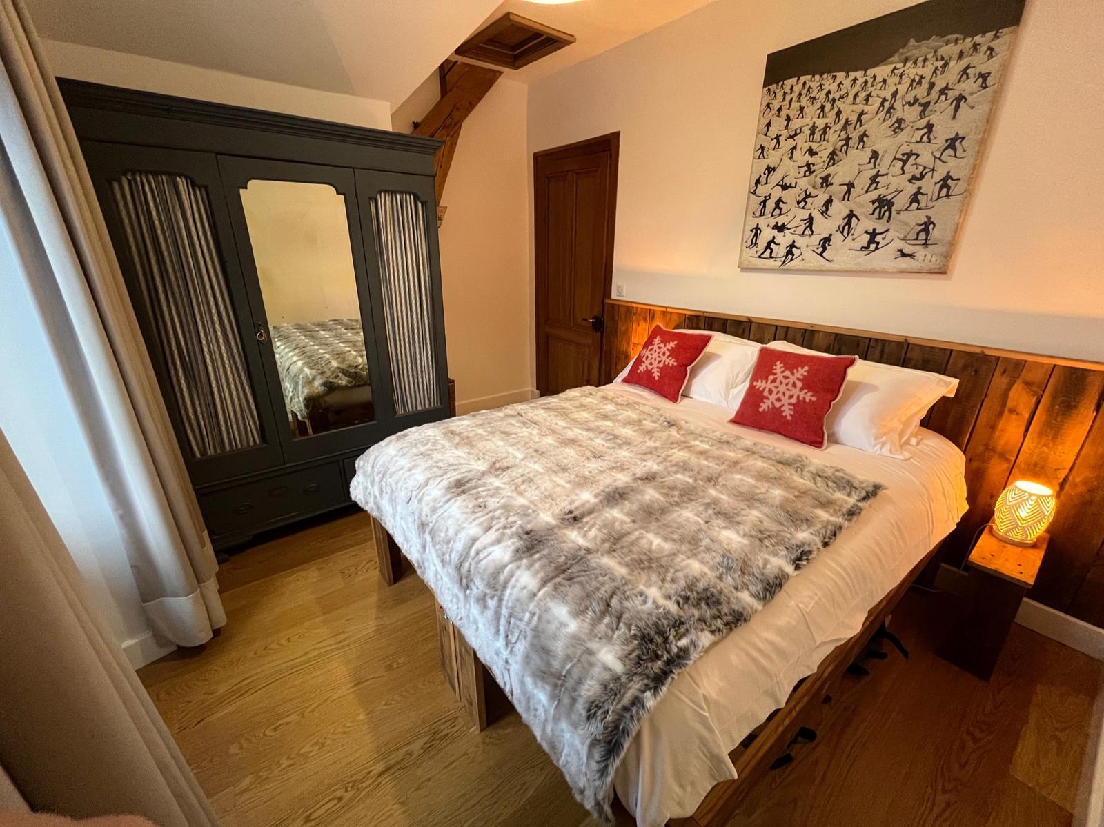 Bedroom 3: The third bedroom has a double bed (160 x 200 cm), which can also be made up into 2 singles; wardrobe. Views of the Grand Montets Massif.