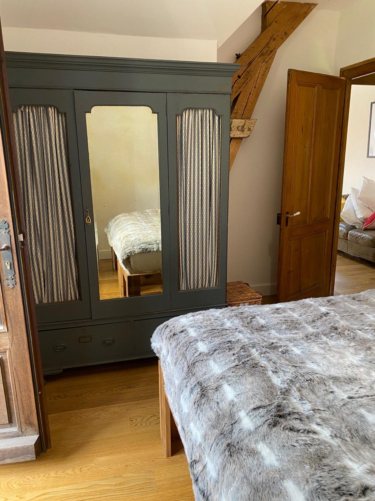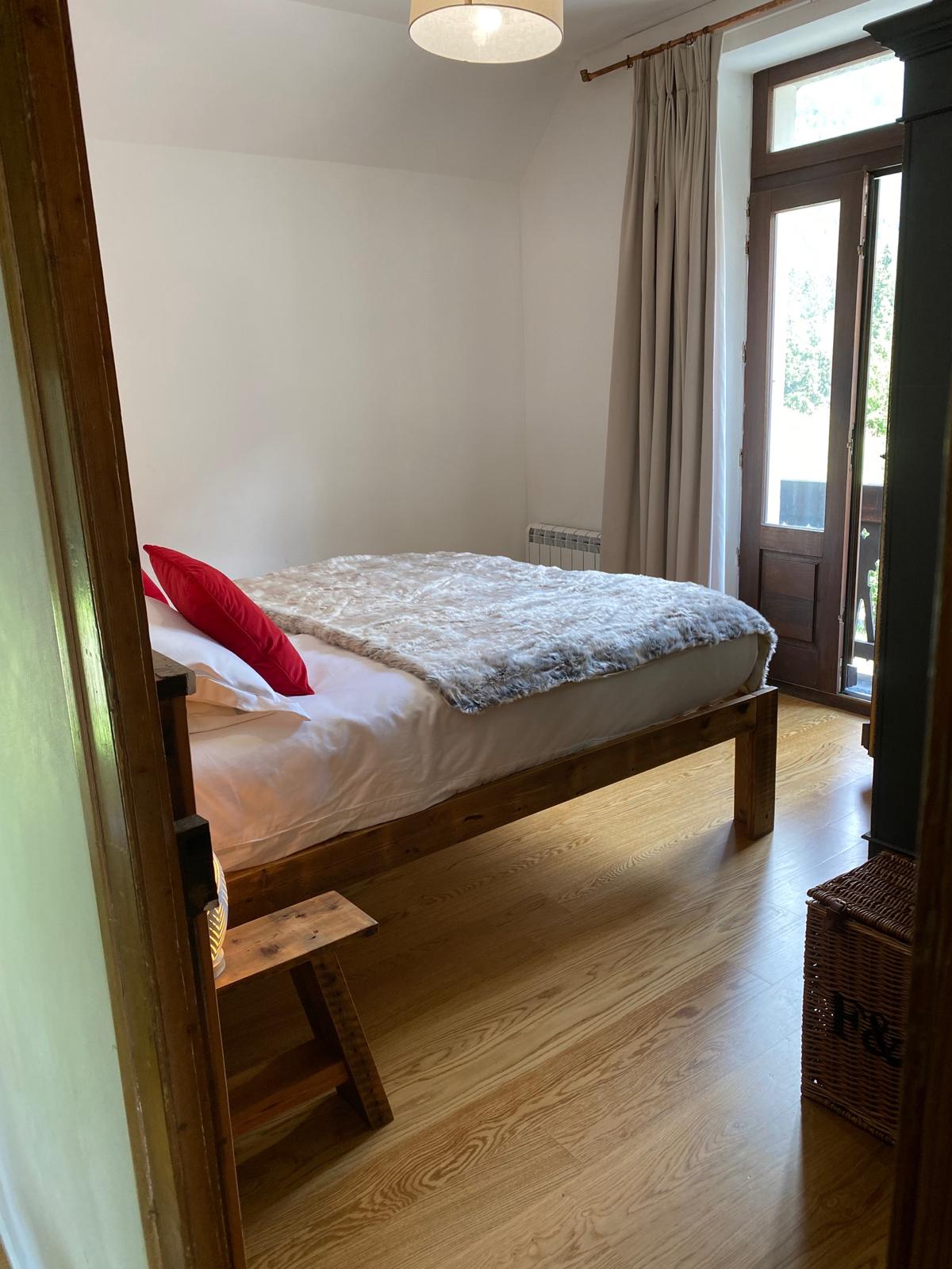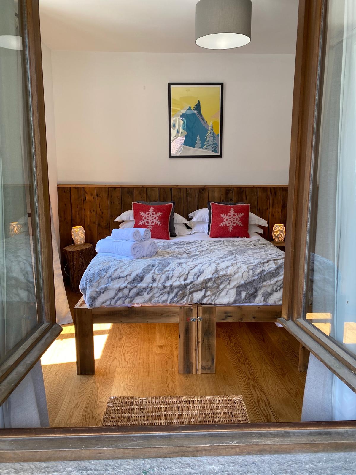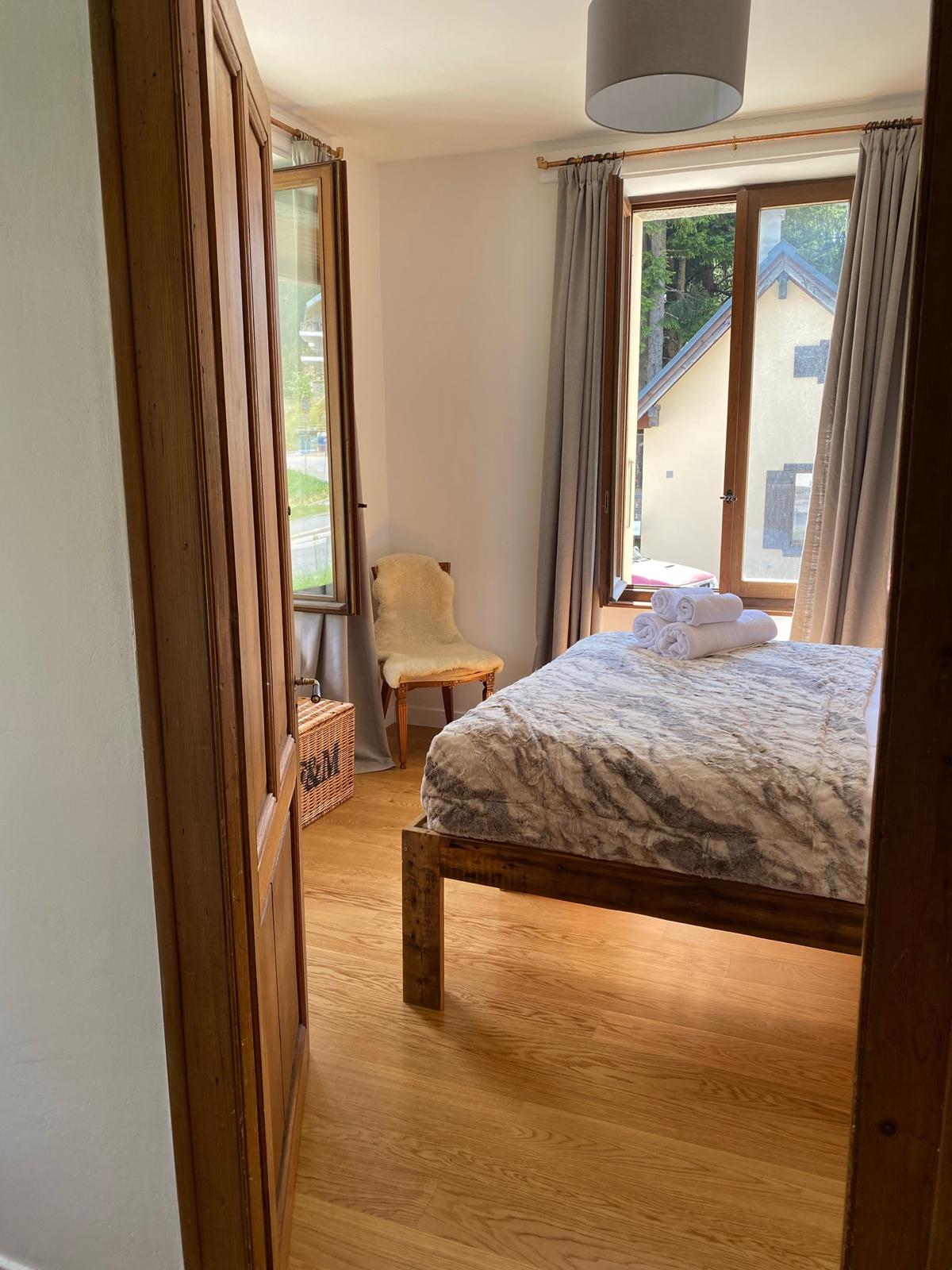 Bedroom 1: Double bedroom is on the first floor with French windows opening onto a small balcony. It is beautifully furnished with a double bed (160 x 200cm) which can also be made up into 2 singles; large wardrobe. Views of the Grand Montets Massif.