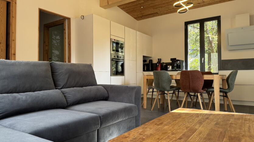 The house is bordered by the Arve, offering a calm and relaxing atmosphere, perfect for recharging after a day in the mountains.