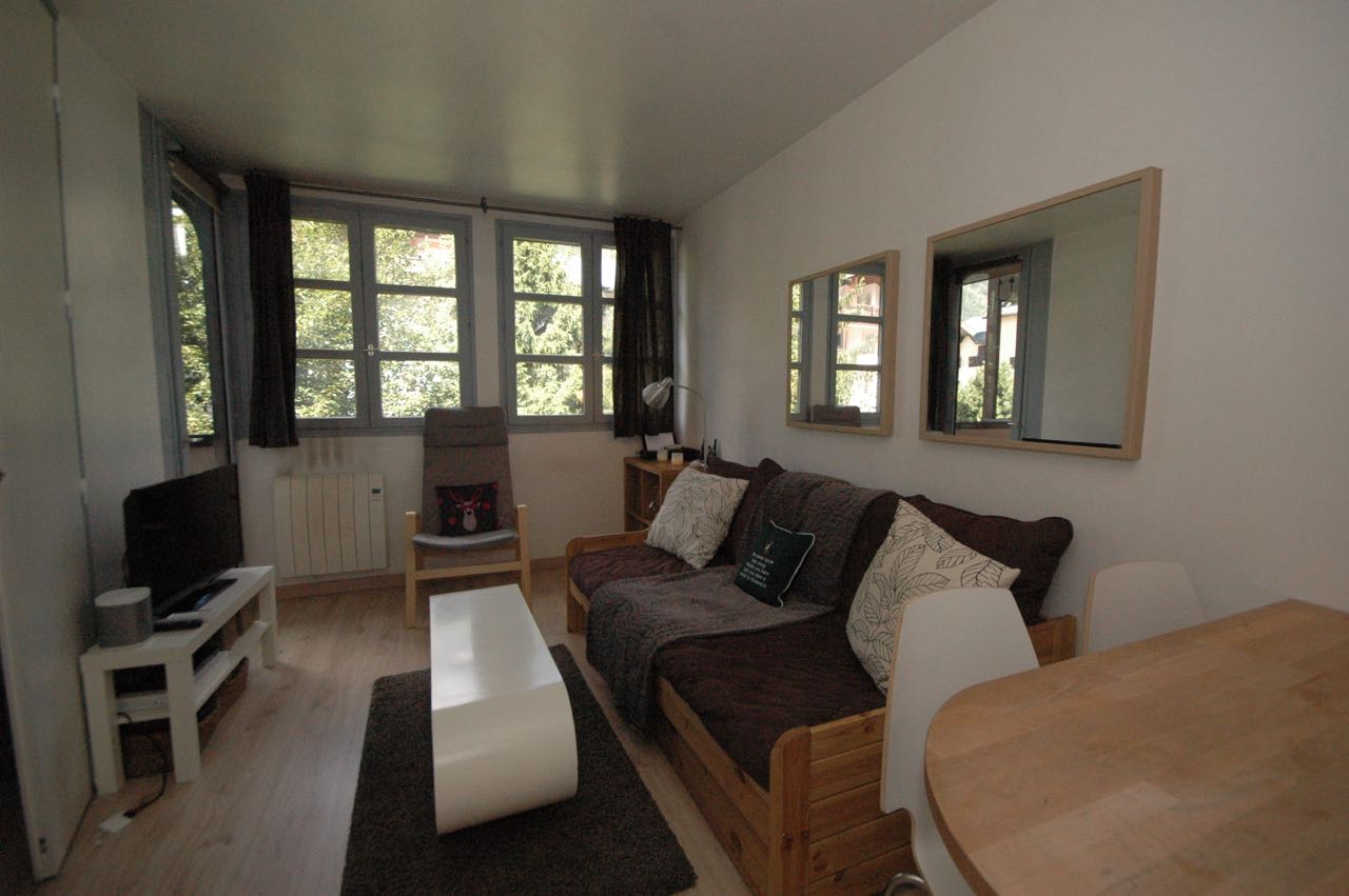This 27sqm apartment faces the river Arve and Brevent/Aiguilles Rouge, and it has a sizeable balcony with view to the same side.