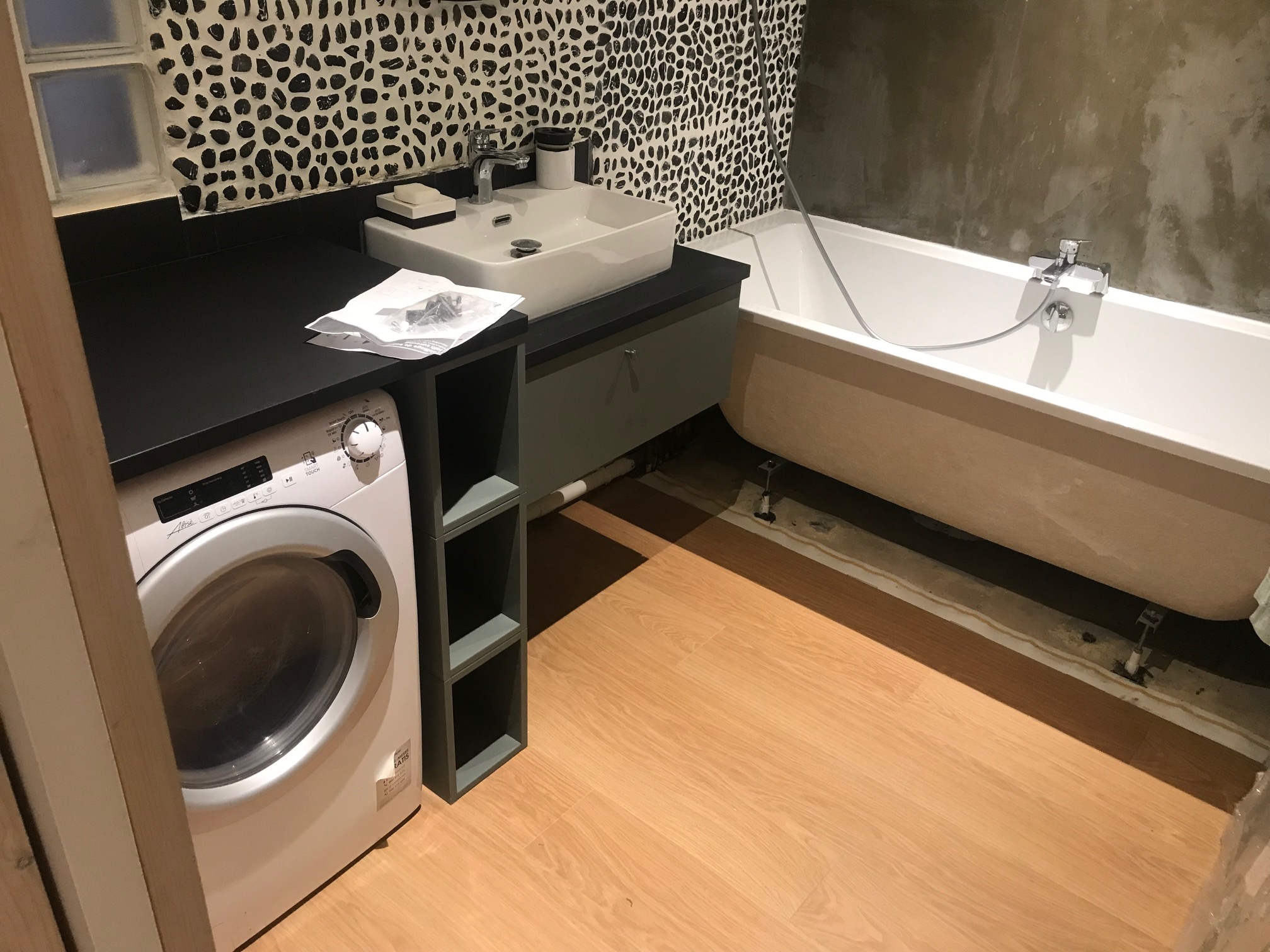Downstairs there is a bathroom with bath/shower, sink and washing machine and dryer. There is also a double bedroom with loads of storage and a spacious bedroom with a single bed with a single pull out. The bed also makes a double.
