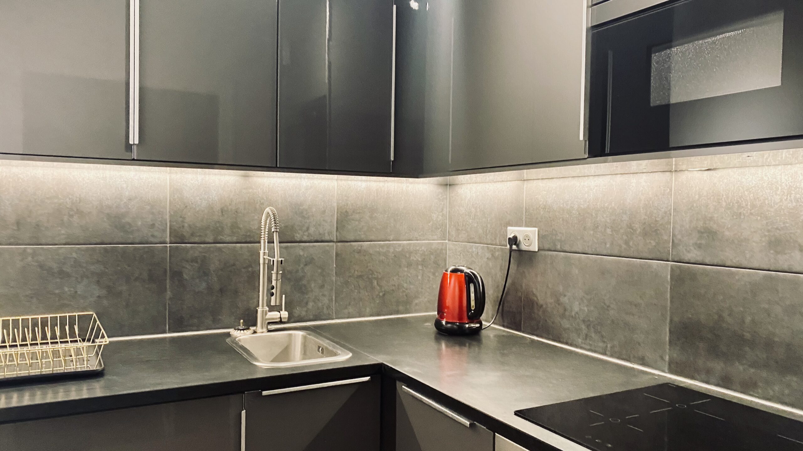 Fully equipped kitchen with oven, hob, microwave, kettle, crockery, basics – all you need for self catering