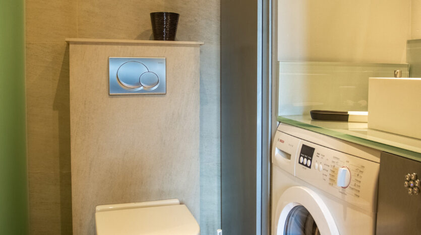 The lounge is spacious with a modern open-plan kitchen and dining area. There is an ‘island’ bar in the kitchen area, and the dining area has a beautiful glass table that can accommodate 10 diners. The lounge area has comfy leather sofas, which convert into top-quality sofa-beds to accommodate occasional guests. The apartment comes with WiFi and is ideal for a home-working environment. The apartment has two bedrooms arranged as a double (with kind size bed), and a twin (the beds can be joined together to make a king). Both bedrooms share a luxurious bathroom with bath and shower, and a separate WC.