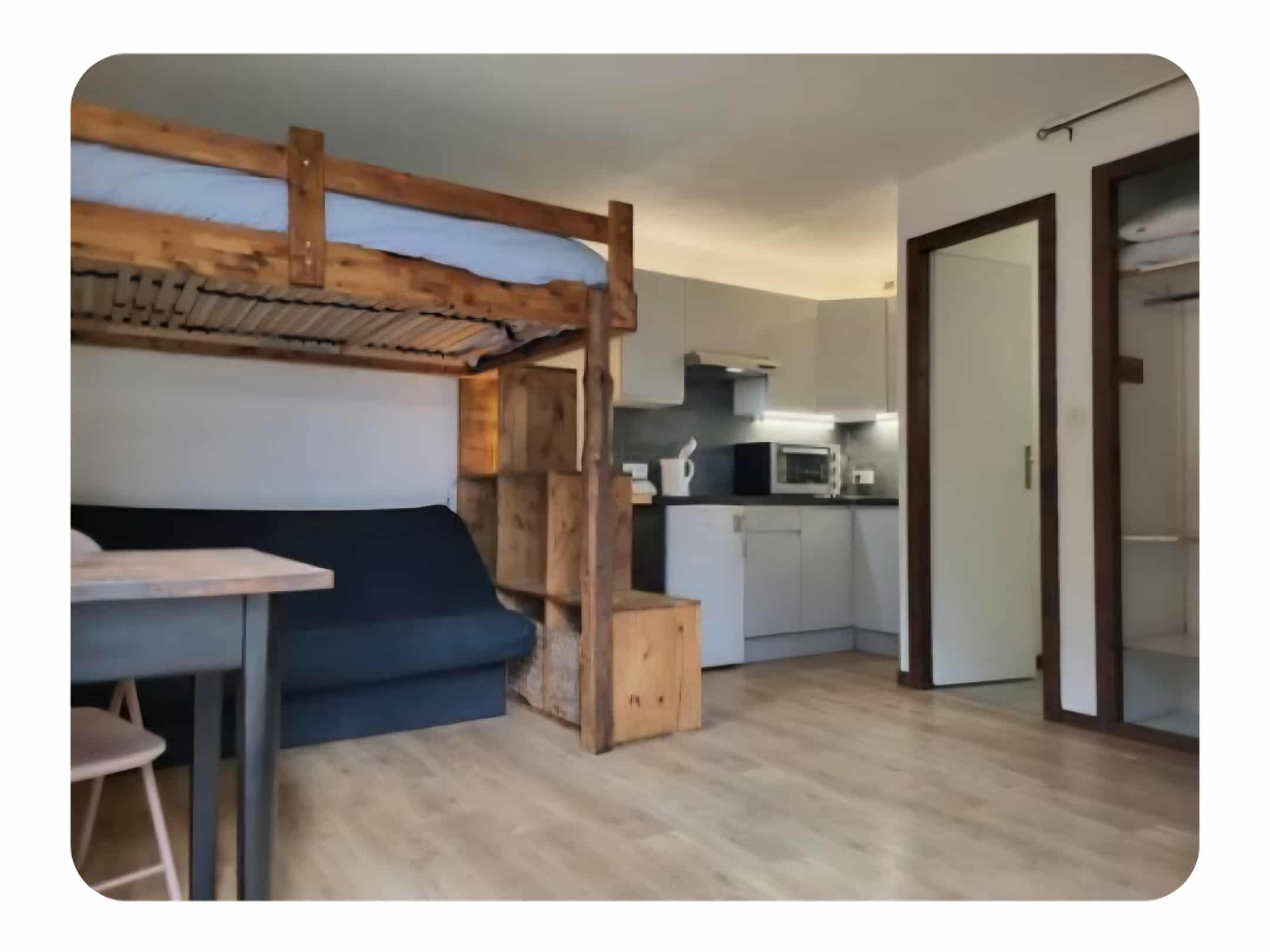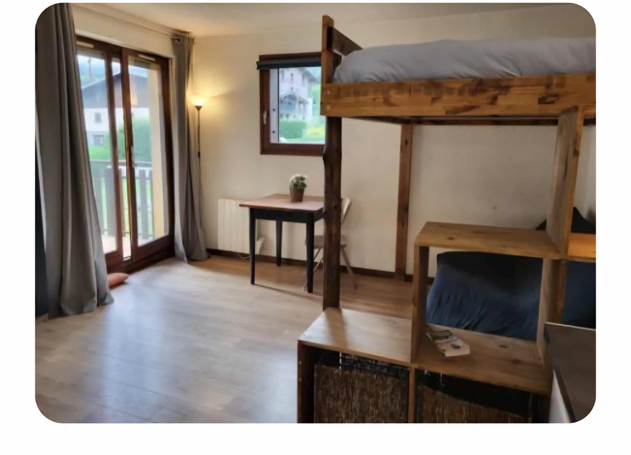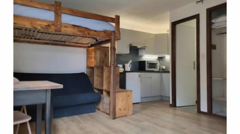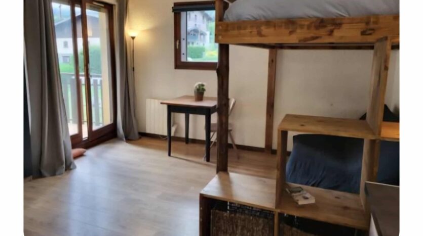 Fully renovated studio apartment in central Les Houches. The apartment has a double bed on the mezzanine.