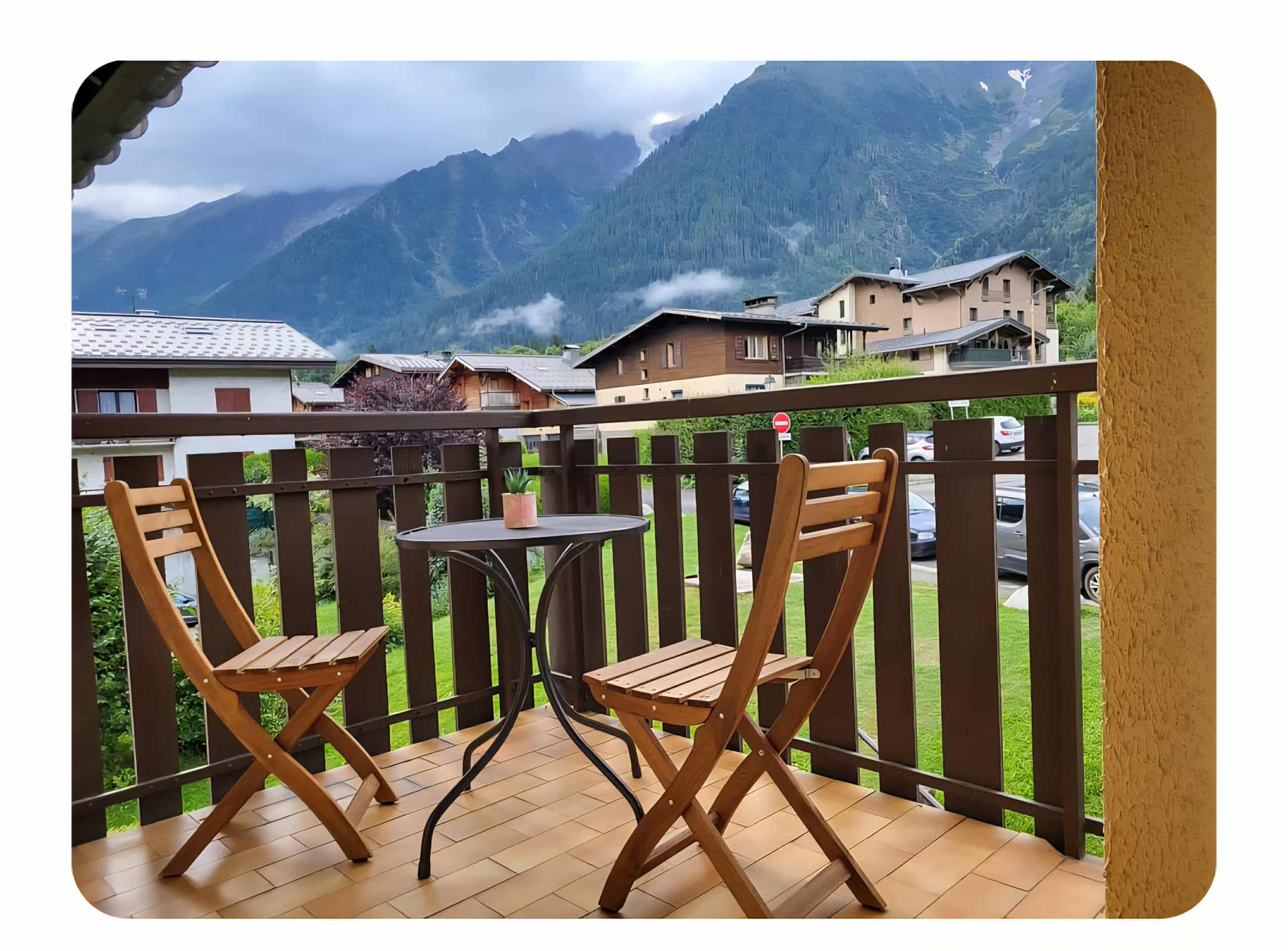 Beautiful sunny apartment with views to Mont Blanc. 20 m from the bus stop, supermarket and restaurants. A perfect base in the valley.